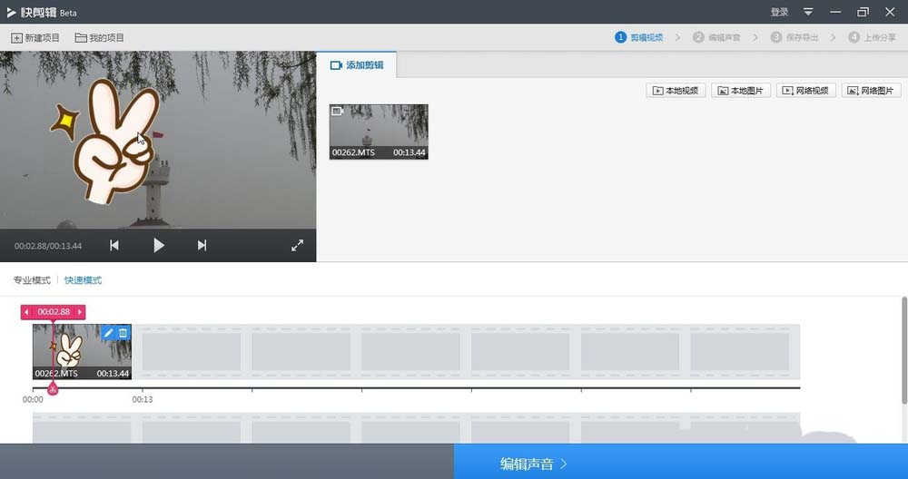 快剪辑视频怎么消音并添加新的声音?