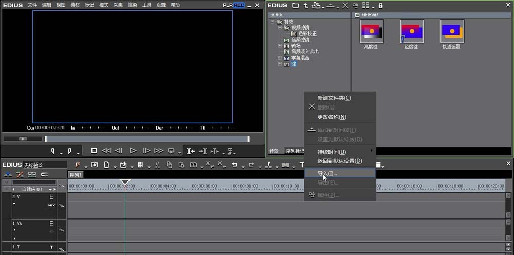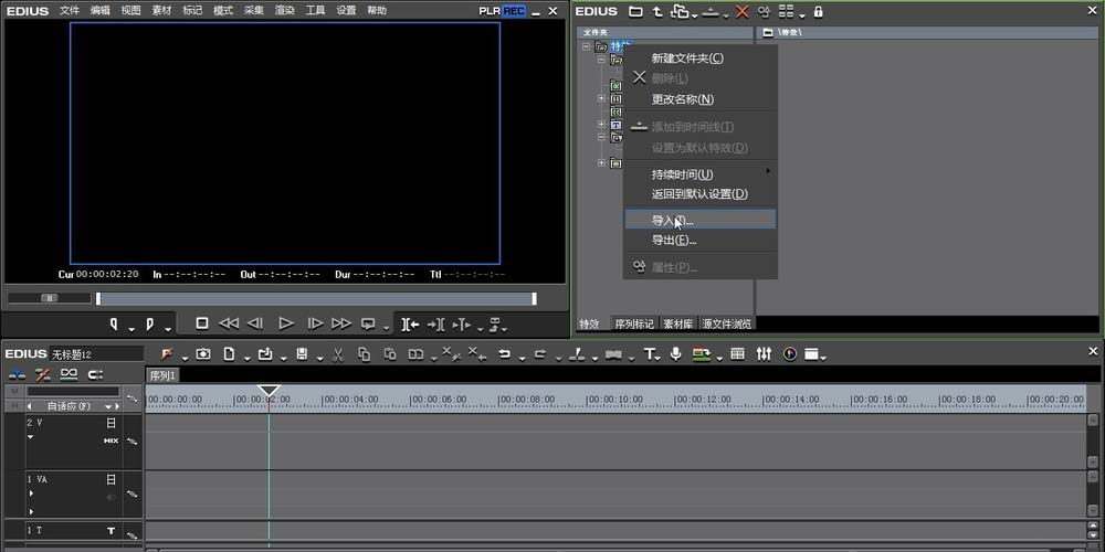 2、再就是进行特效面板的右键点击,找到-导入