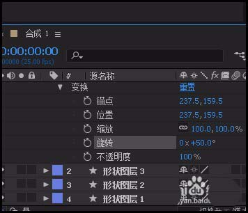 10、再看窗口这里,三个星形都同时旋转50度。
