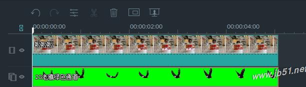 2、将背景片段拖放到时间轴视图中的视频轨道,将绿幕文件拖到PIP轨道,具体如下图所示: