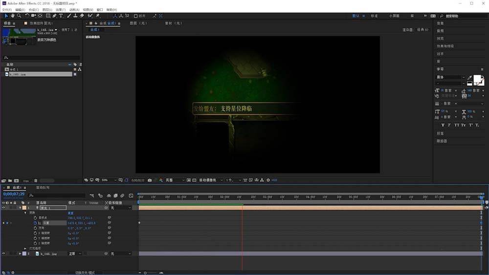 1、首先我们打开ae导入素材创建序列,并新建灯光图层。
