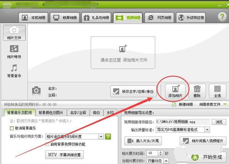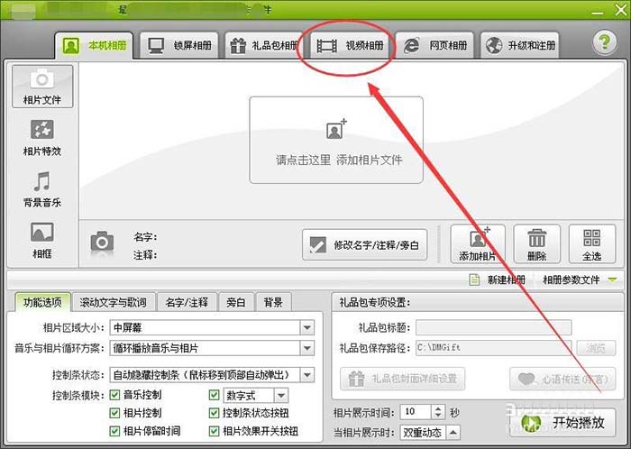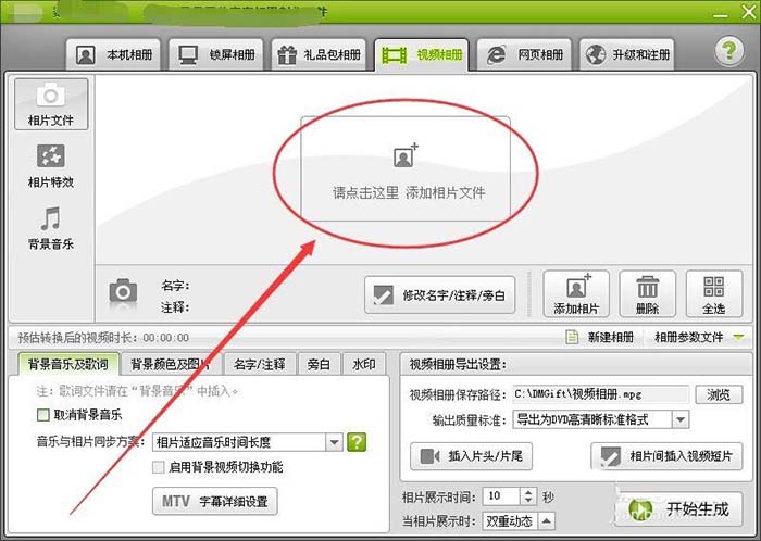 方法一:单击预览窗口中的请点击这里添加相片文件,打开选择图片窗口。