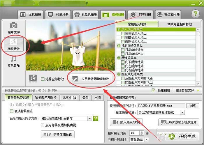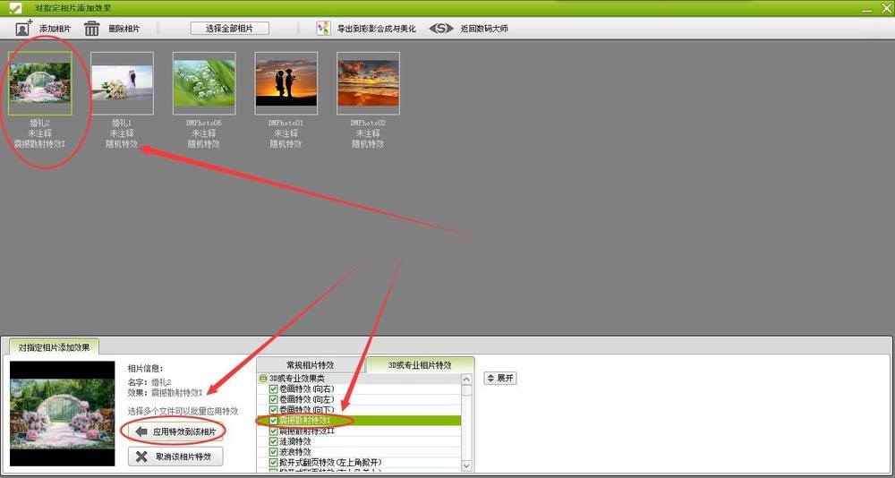 4、选择相片特效选项卡,单击应用特效到指定相片按钮。