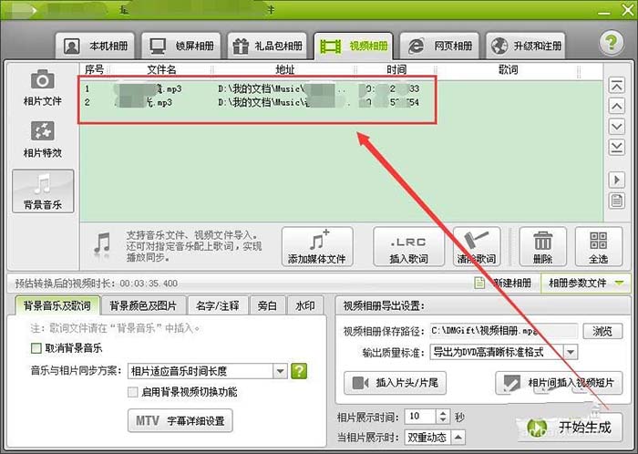 7、预览窗口会显示插入的音乐,可以插入多段音乐。