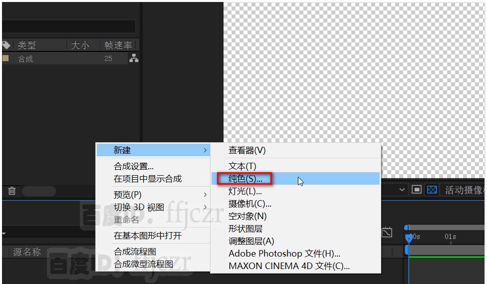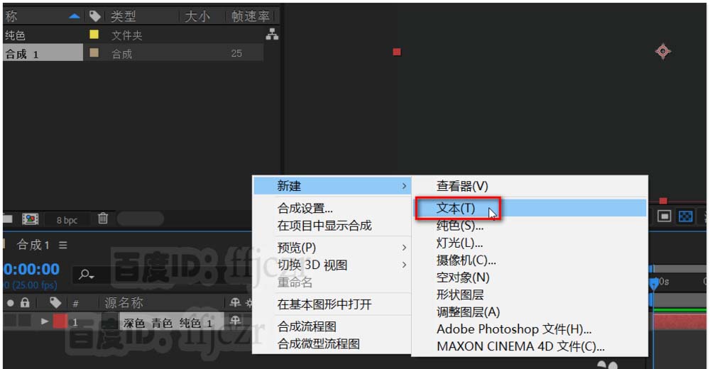 2、在合成图层中新建一个纯色层作为背景用。颜色为灰黑色(这个只要与文字有明显区分即可)