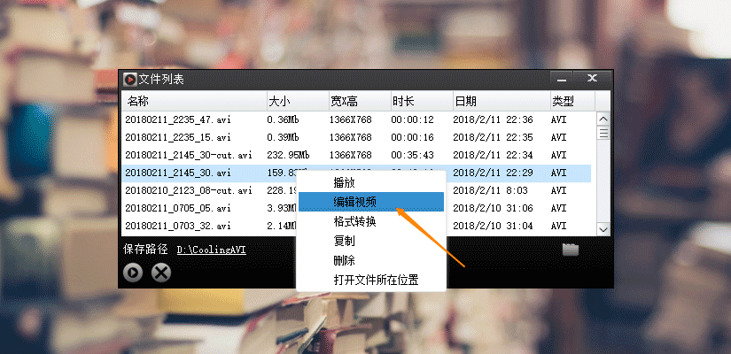 打开文件列表,选择一个视频点击鼠标右键,选择编辑视频