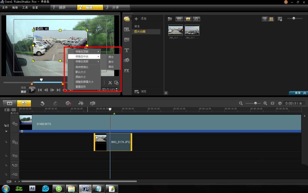 3、选择这个编辑框,然后点击右键,会有各种命令可与选择,可以自由选择素材的位置和大小。