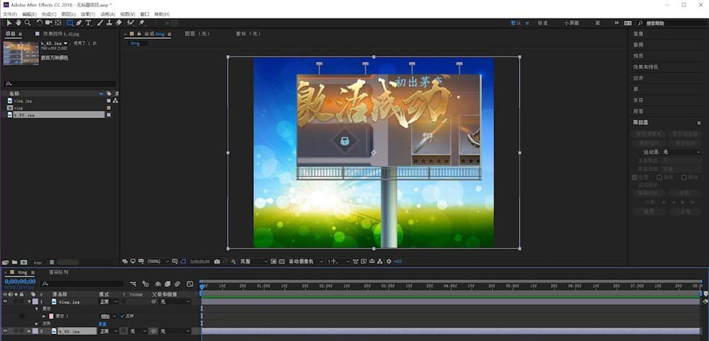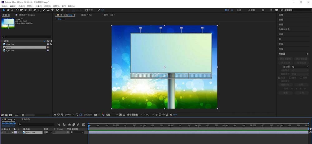 2、直接使用广告牌素材创建合成,合成参数不变。