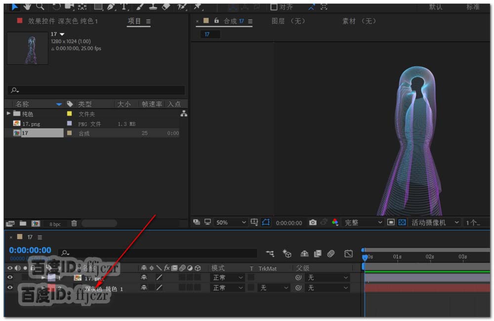 2、点开透明网格,可以看到透明背景的图形.添加一个纯色层作为背景层。