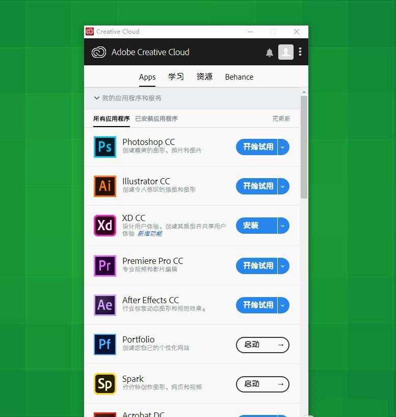 1、首先打开 Adobe Creative Cloud,在列表中找到 Adobe After Effects CC 2018 ,点击打开