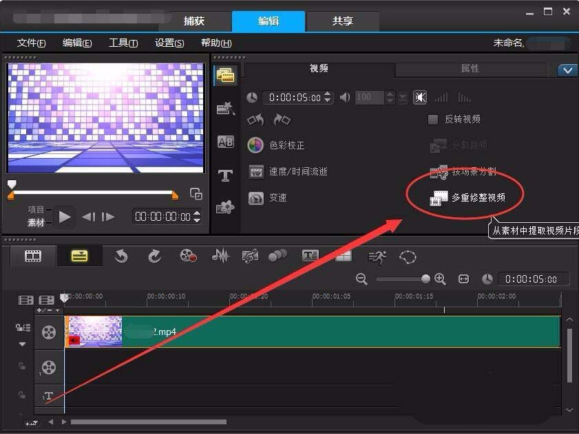 4、编辑窗口中,选择多重修整视频选项。