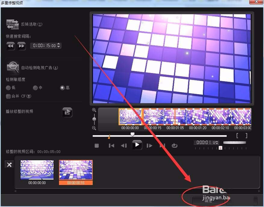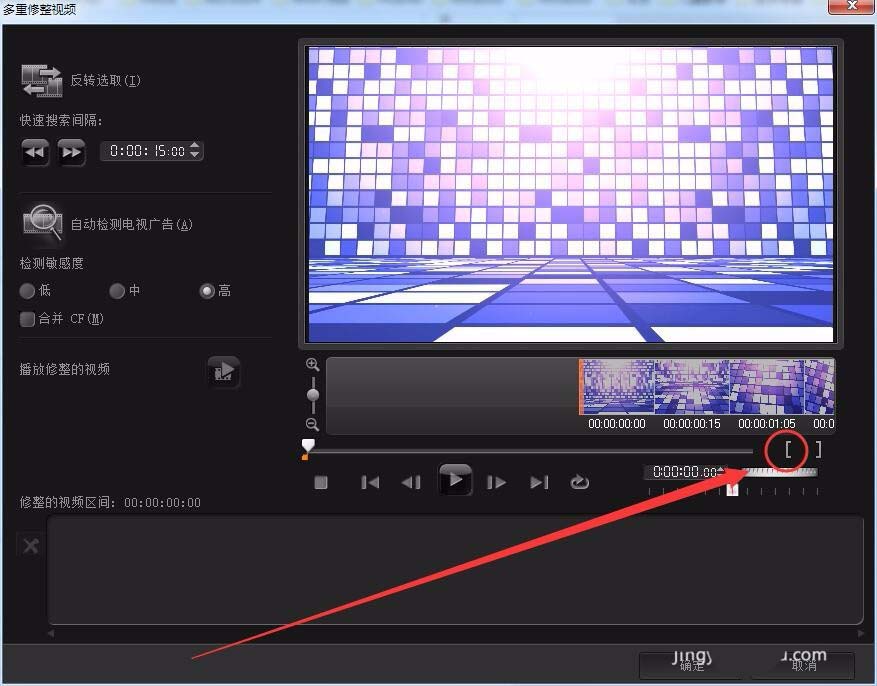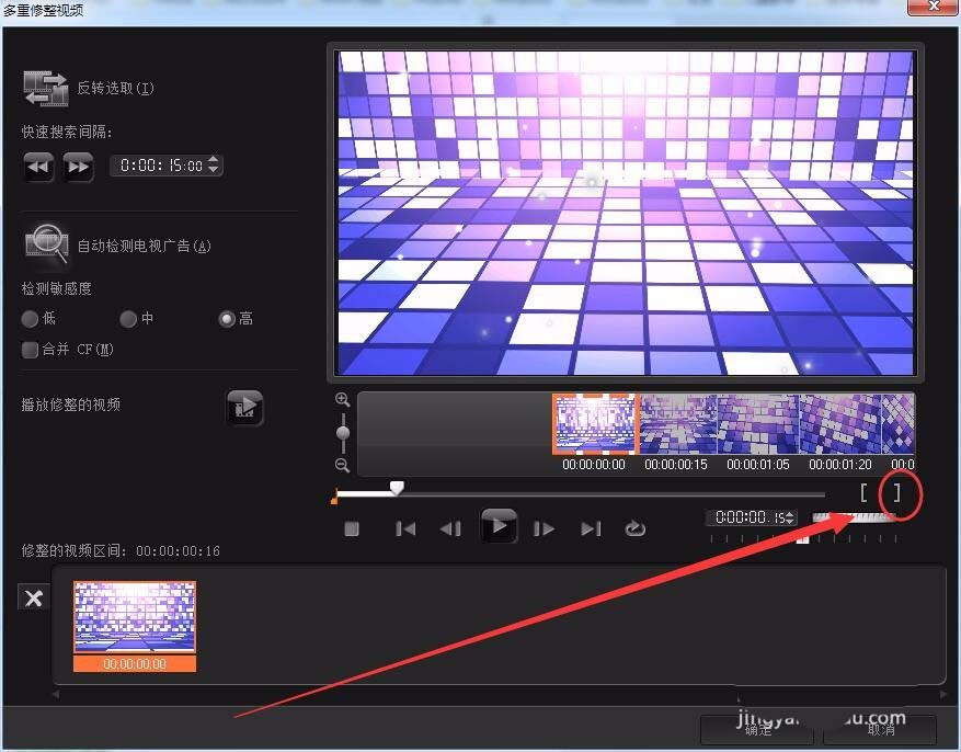 7、用结束标记选择要保留视频的结束帧,选取一段视频。