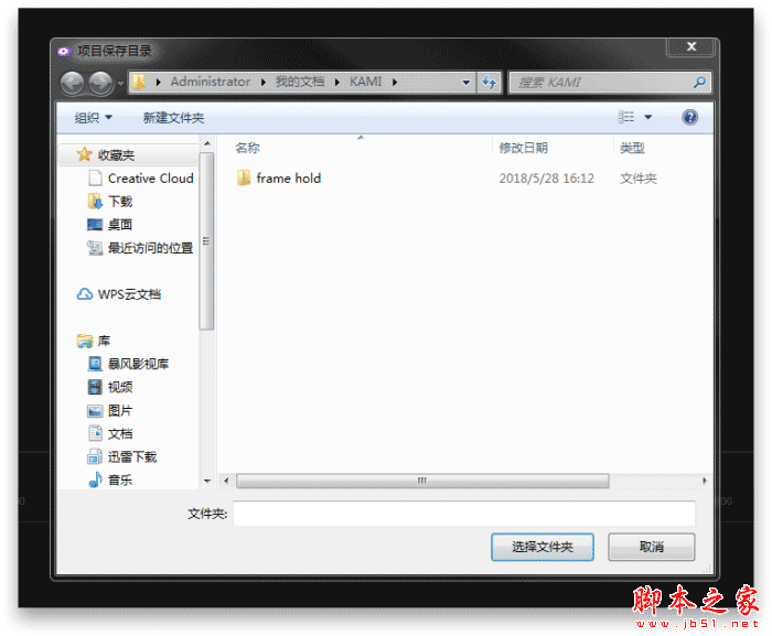 3、选择保存项目的文件夹后,鼠标左键点击“选择文件夹”。