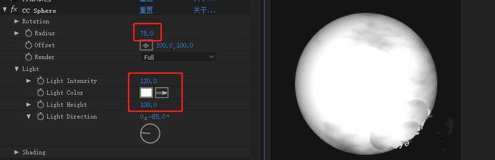 3、1-03为纯色层添加效果-透视-CC Sphere,参数如图