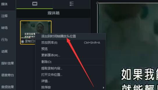把视频文件拖放到时间轴,可以使用鼠标直接拖拽,或者是鼠标右击选择添加到时间轴,
