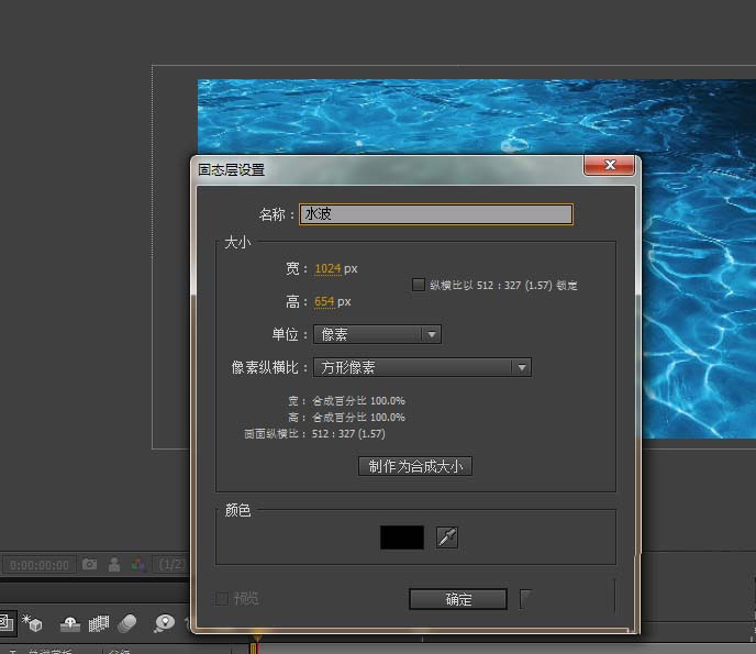 2、新建一个固态层,并且命名为水波,给水波固定层添加分形噪波的效果