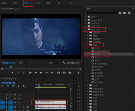 选中视频轨道,点击上方的效果,在右侧栏中点击视频效果——扭曲,然后双击“变换”,