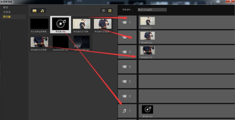 打开多相机编辑器,将导入的素材文件分别拖到相应轨道上,然后点击确定,