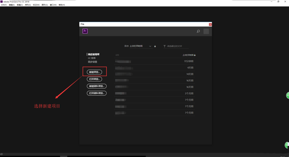 1、双击PR软件,启动Premiere,选择新建项目命令,新建一个PR项目,在新建项目窗口中设置好项目的相关属性。