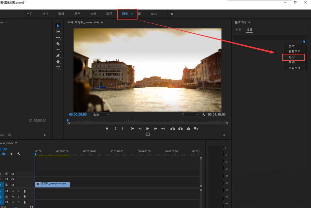 2、当前页面是处于“编辑”界面,单击上方的“图形”切换到图形界面中,在图形界面中切换到编辑窗口,在编辑窗口中单击新建图层中矩形选项。
