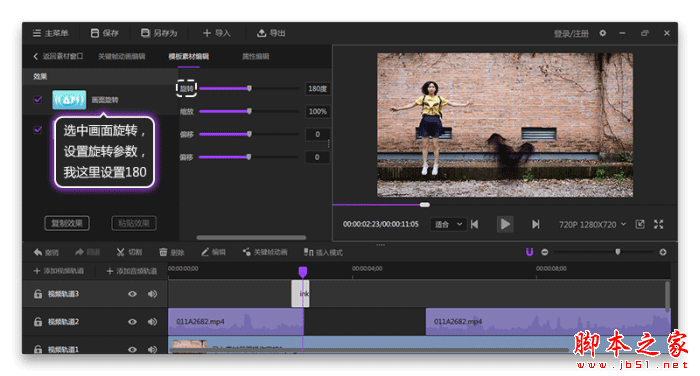 点击画面旋转,设置旋转参数,我在这里设置旋转参数为180。