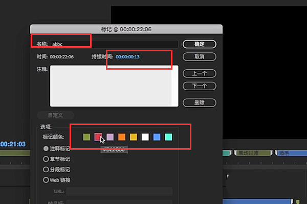 4、接着输入名称,标记时间,选择颜色,如下图所示