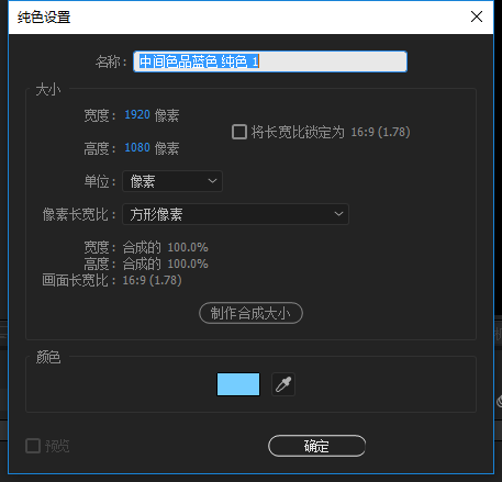 3、弹出纯色设置窗口,在纯色设置中保持参数默认,然后可以随便选择一个颜色,这个对后面的操作没有影响。
