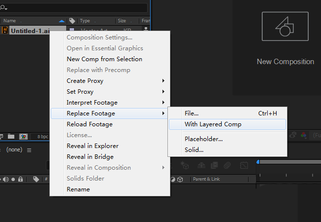 6、如果我们的导入方式错了,我们可以右键,换成合成的方式。