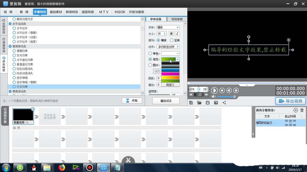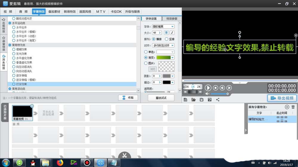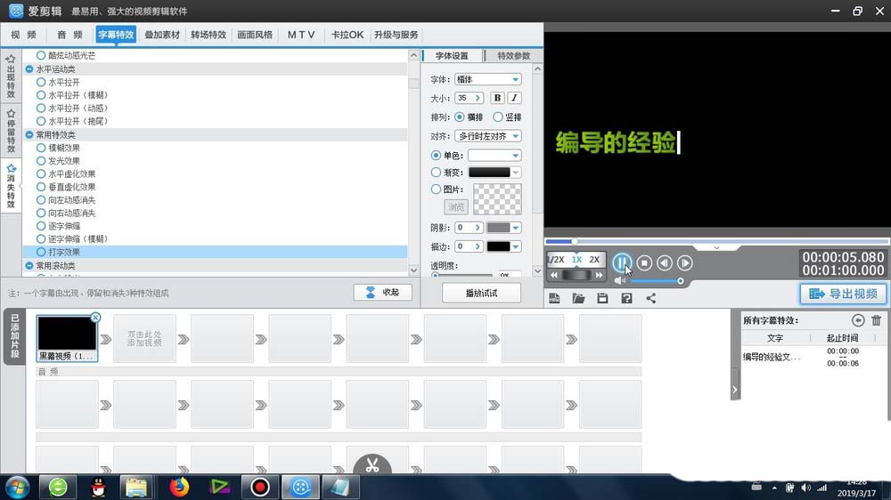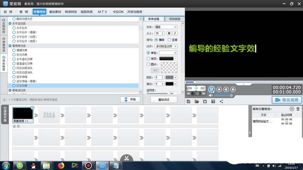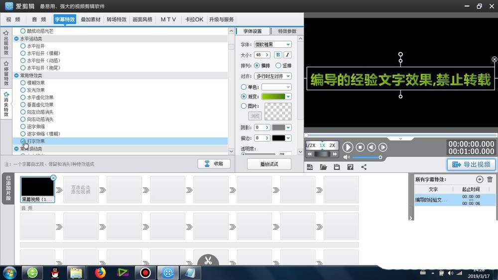 1、首先这个打字消失效果 -是在爱剪辑里面的字幕特效-消失特效-常用特效类-可以找到