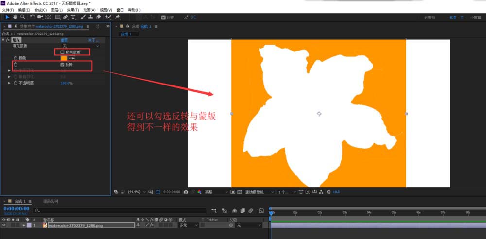 6、在效果控件的填充效果设置中,还可以勾选反转与蒙版,来设置不一样的填充效果。大家都可以试一试。