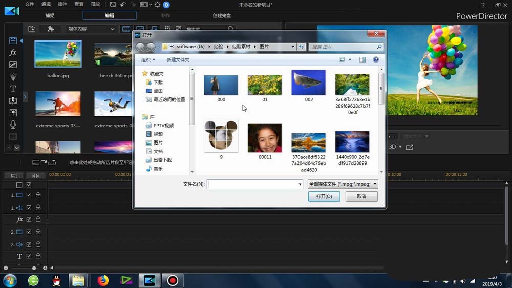 2、接下来就是到导入我们的图片或者是视频素材