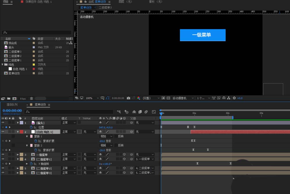 ae中想要制作一个下拉菜单,鼠标点击一下,菜单显示二级下拉导航,该怎么制作这个动画效果呢?下面我们就来看看详细的教程。