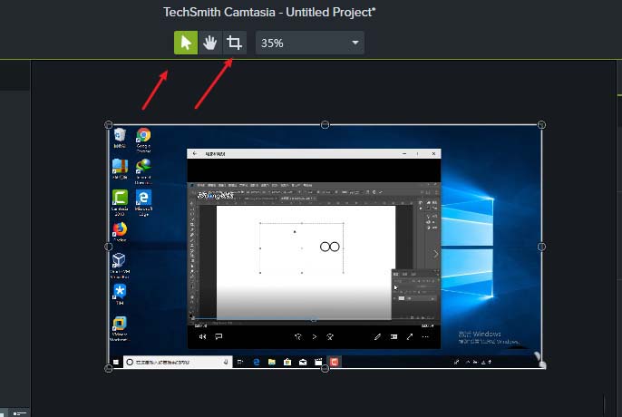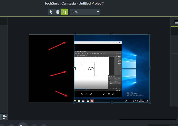 4、鼠标移动至画面边缘,带变成双箭头即可拉动裁剪