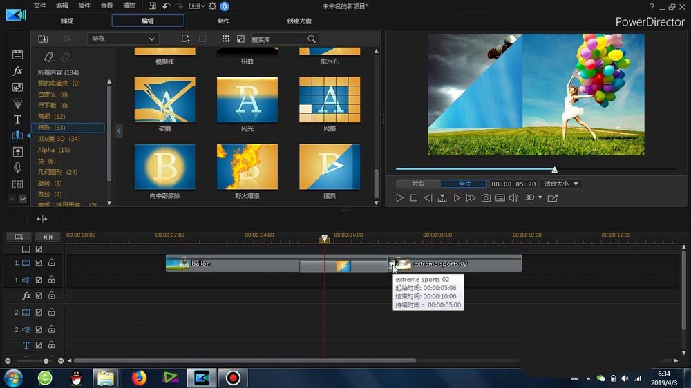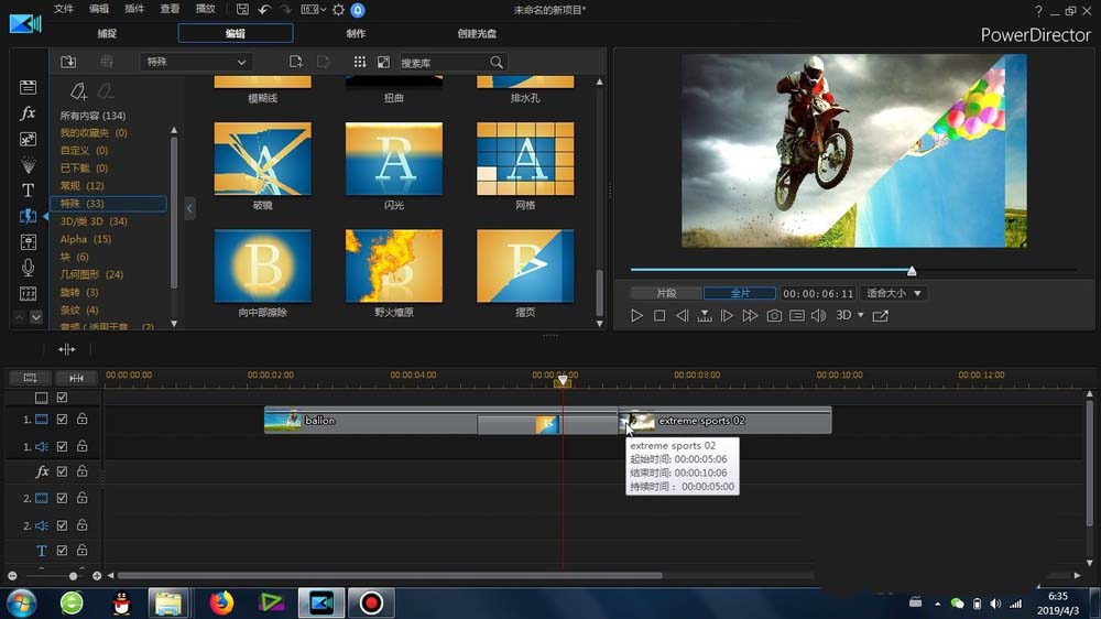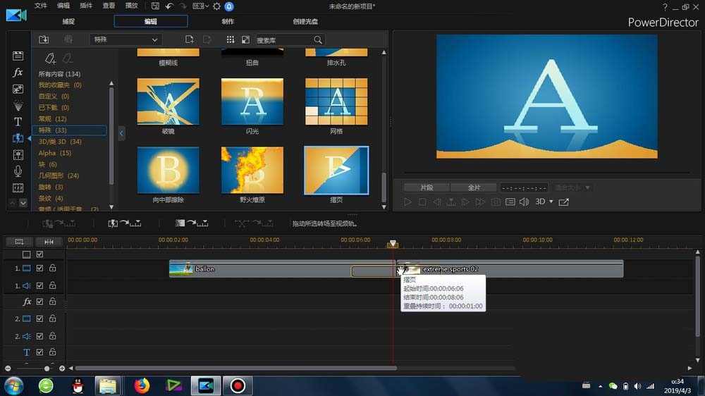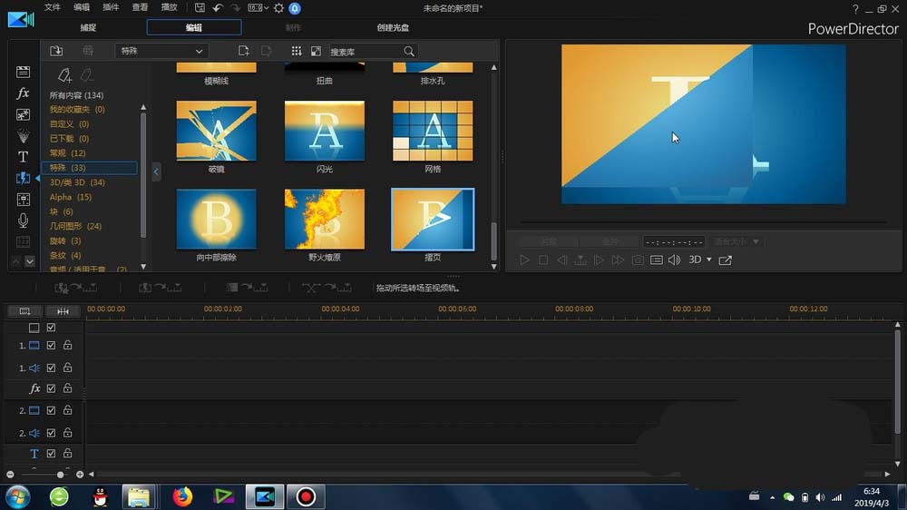 1、这里的“折页”转场是在威力导演里面的-转场-特殊-里面可以找到