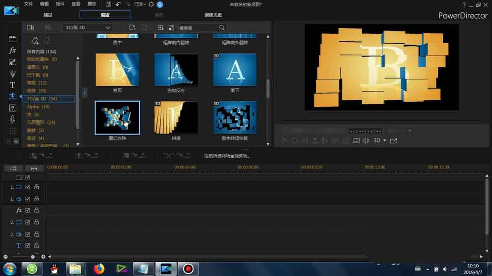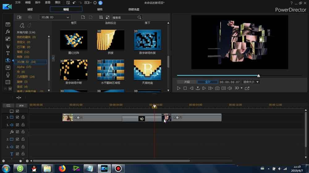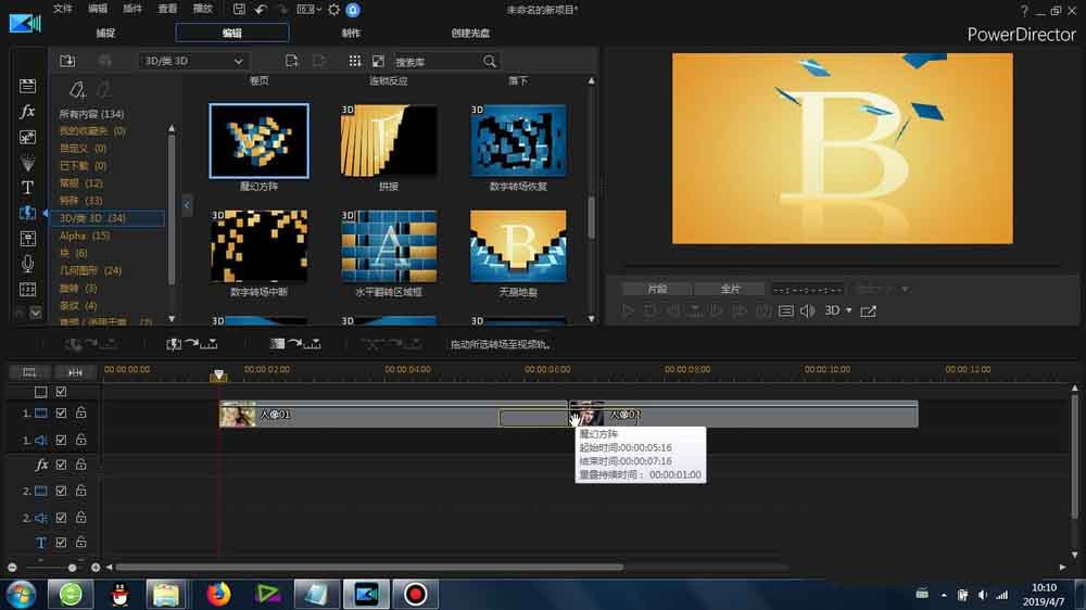 1、这里的“魔幻方阵”转场是在威力导演里面的-转场-3D/类3D-里面可以找到