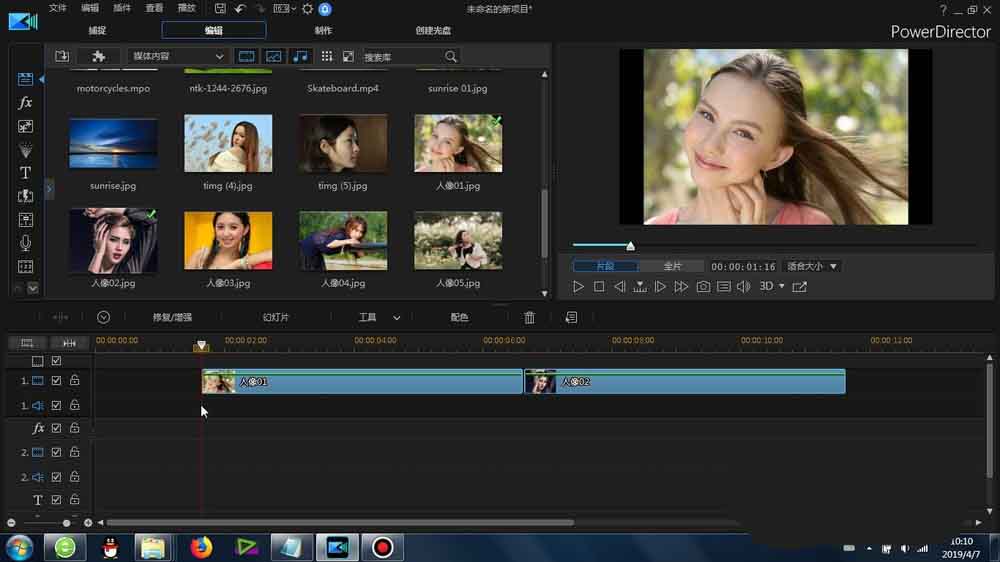3、导入之后的素材,将其导入到威力导演的时间线视频轨道上,保证首尾相连