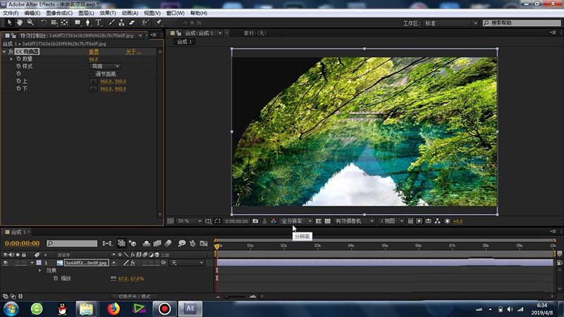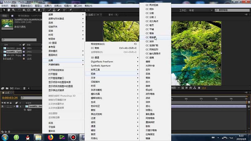 3、接下来的重点来了,选中素材,依次选择:效果-扭曲-弯曲器效果