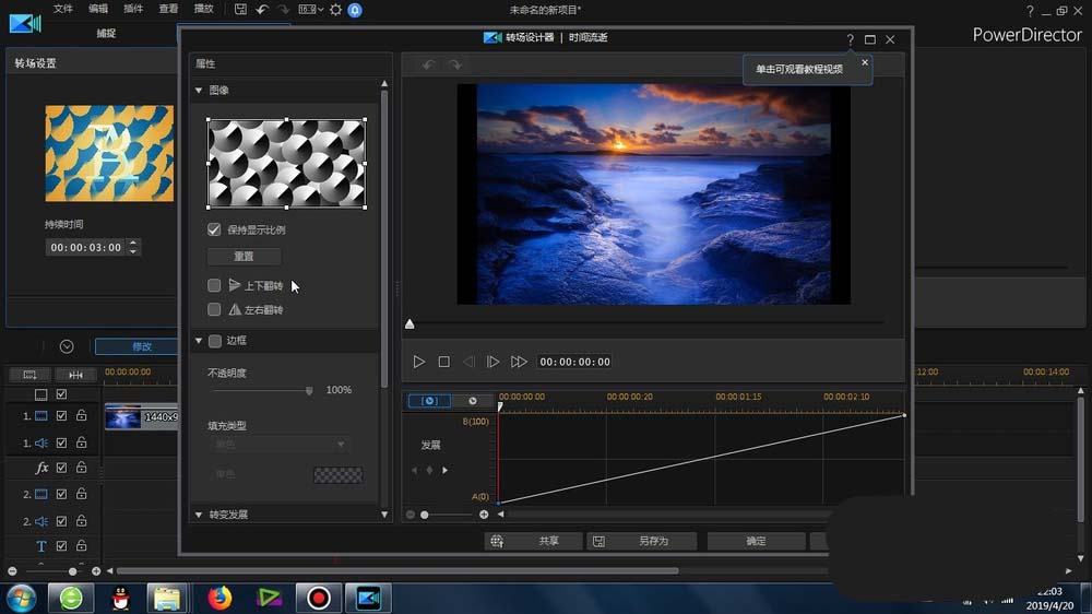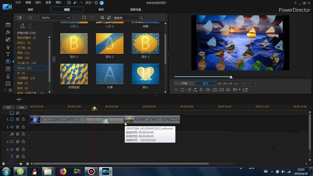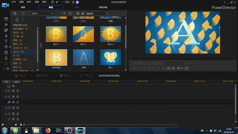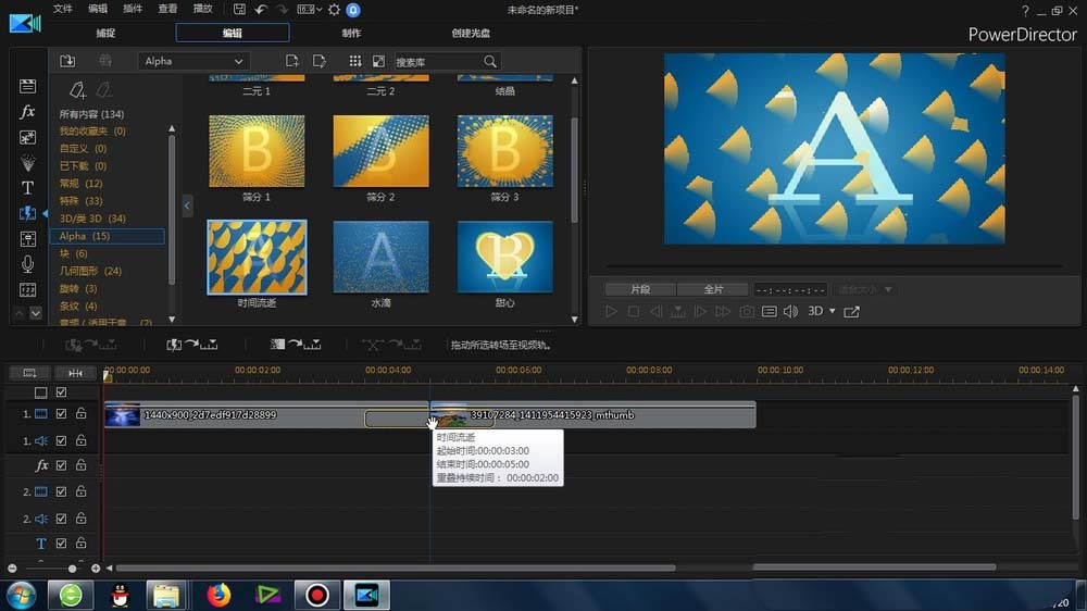 1、这里的“时间流逝”转场是在威力导演里面的-转场-alpha-里面可以找到
