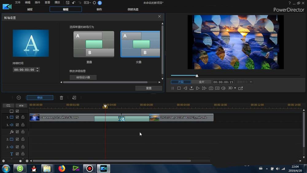 5、可以进行参数的重新设置:持续时间、图片的叠加方式以及转场设计器里面的参数