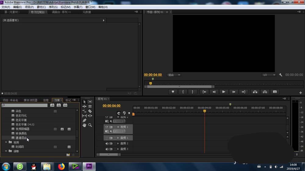 1、首先就是这个“通道混合”的功能是在-特效-视频特效-颜色校正- 里面