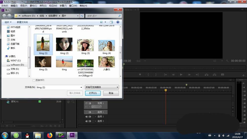 2、再有就是将速到进行导入素材库(图片或者视频都可以)