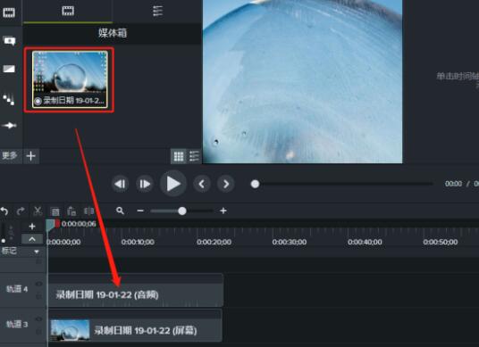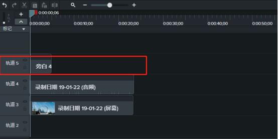如图,我们可以在时间轴上看到一条轨道(旁白4),声音录制成功了,将其插入相应的视频时间线上即可。