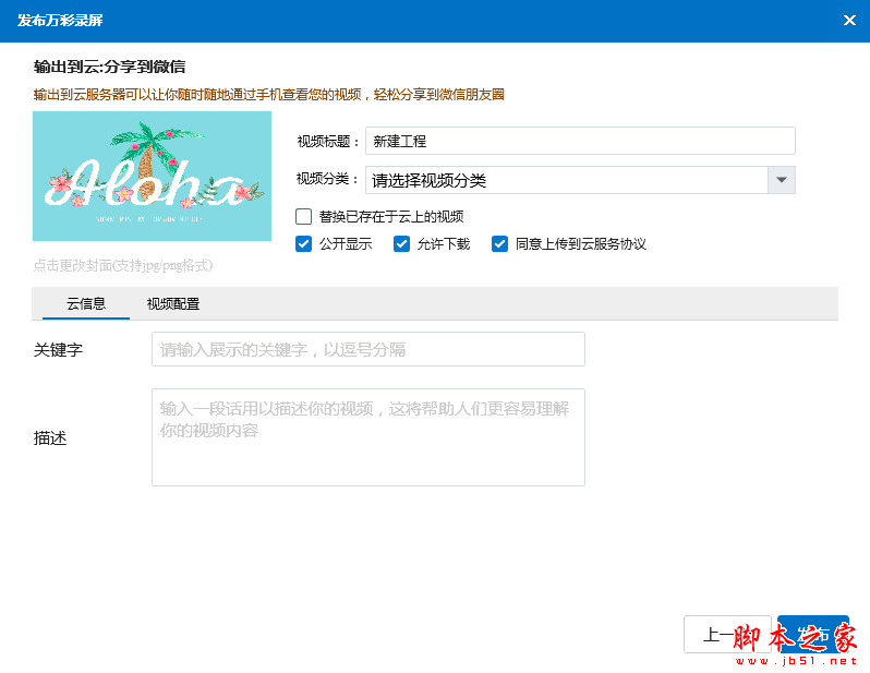 以上便是小编为大家整理的万彩录屏大师自定义云视频封面的详细操作过程,脚本之家会持续发布更多资讯,欢迎大家的关注。