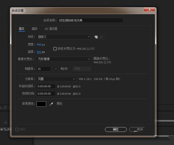 1、打开AE软件,新建合成,命名线性擦除转场效果,调整相应的参数。