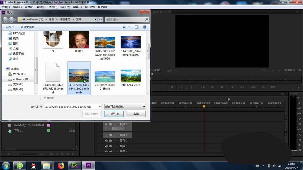 2、再有就是将速到进行导入素材库(图片或者视频都可以)