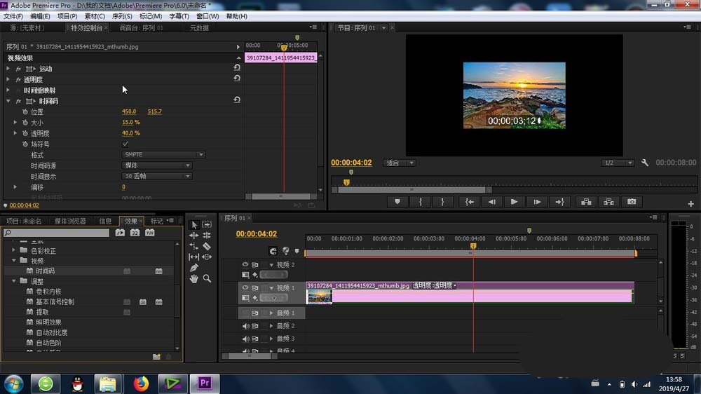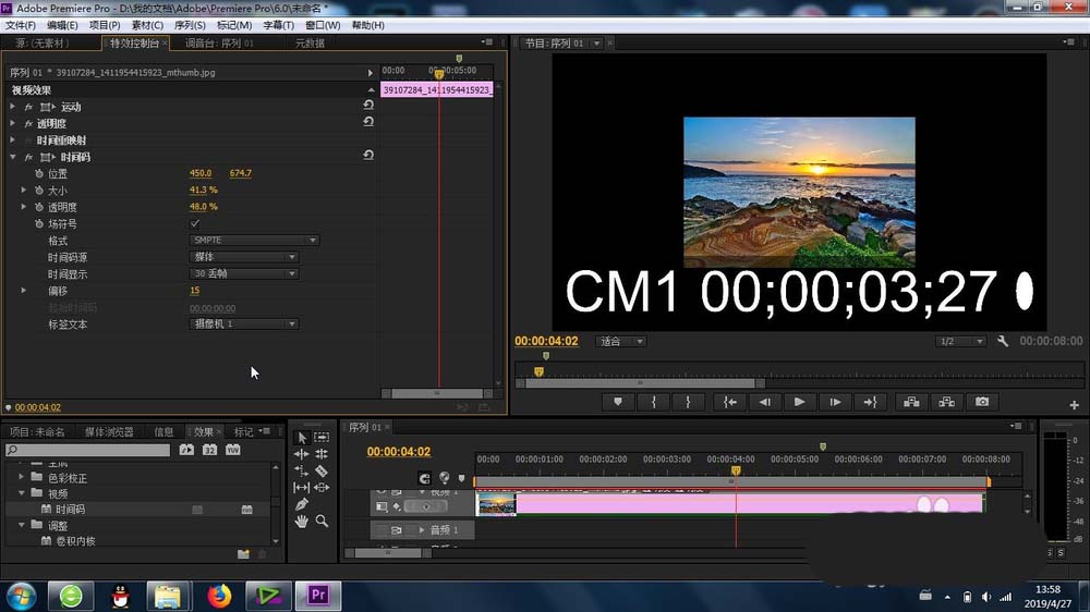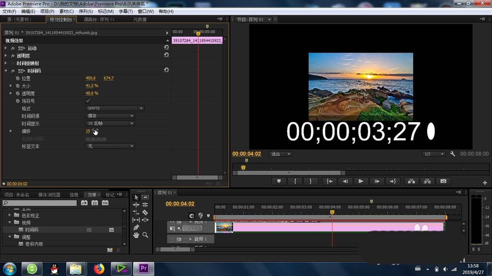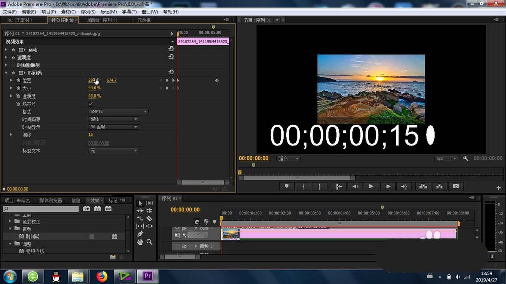 1、首先就是这个“时间码”的功能是在-特效-视频特效-视频-时间码 里面