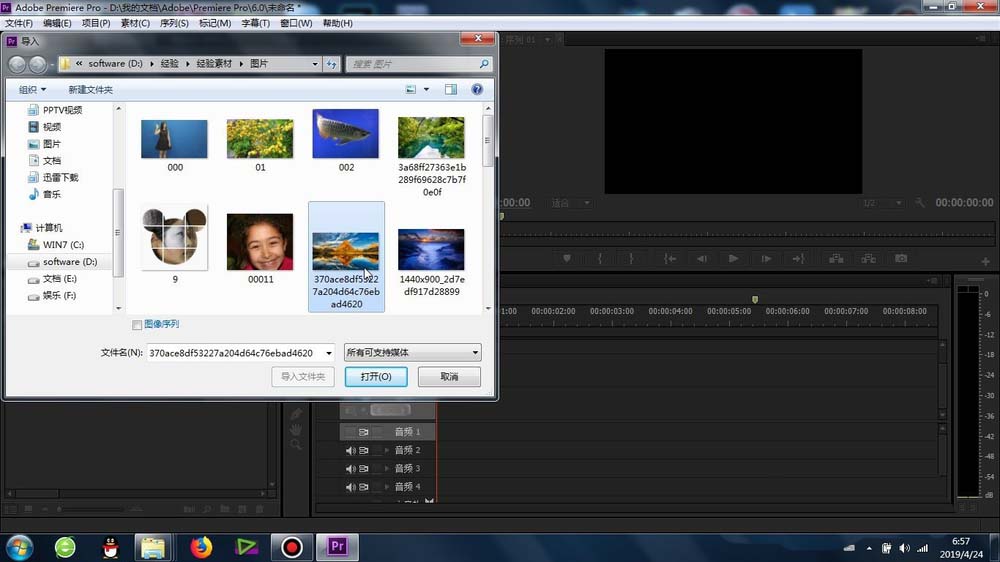 2、在接下来就是更加熟悉的操作步骤:素材的导入(图片或者视频都可以)