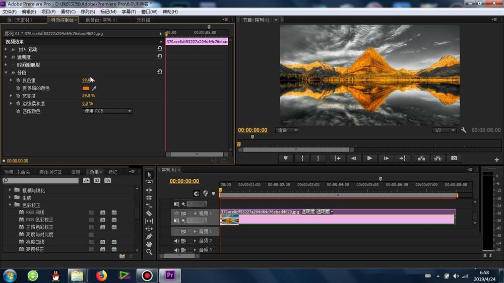 1、要做效果,一定要知道这个“分色”功能的位置:特效-视频特效-色彩校正