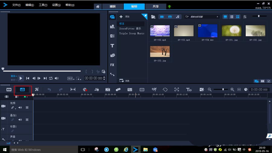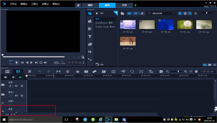 7、第五个是“音乐轨”,与声音轨类似,用于存放音频,录制的旁白只能放在声音轨上