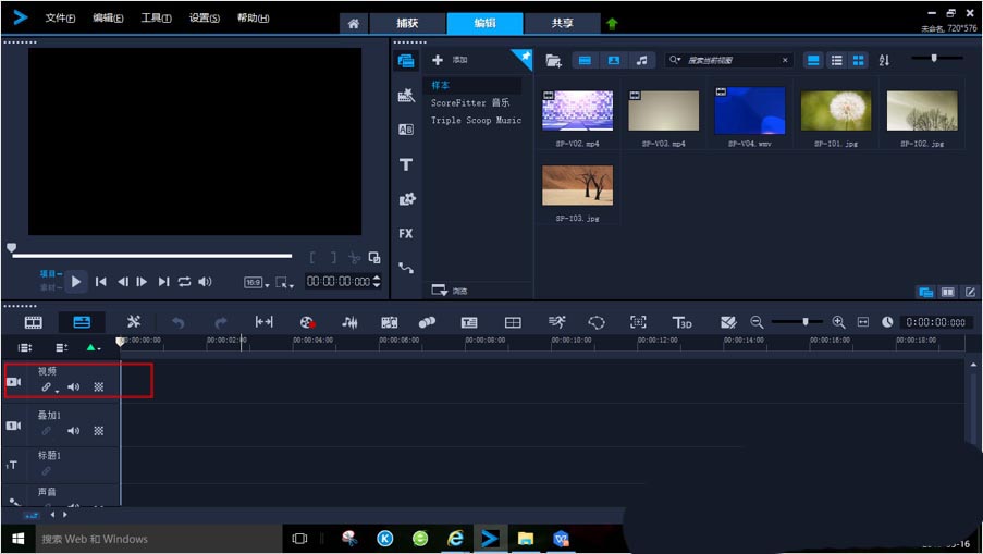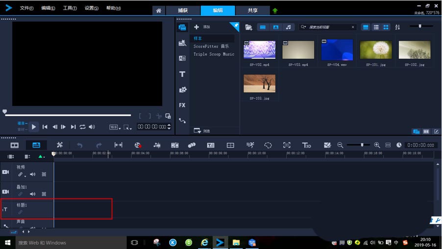 5、带三个是“标题轨”,可以输入文字,显示在之前两个轨道内容之上